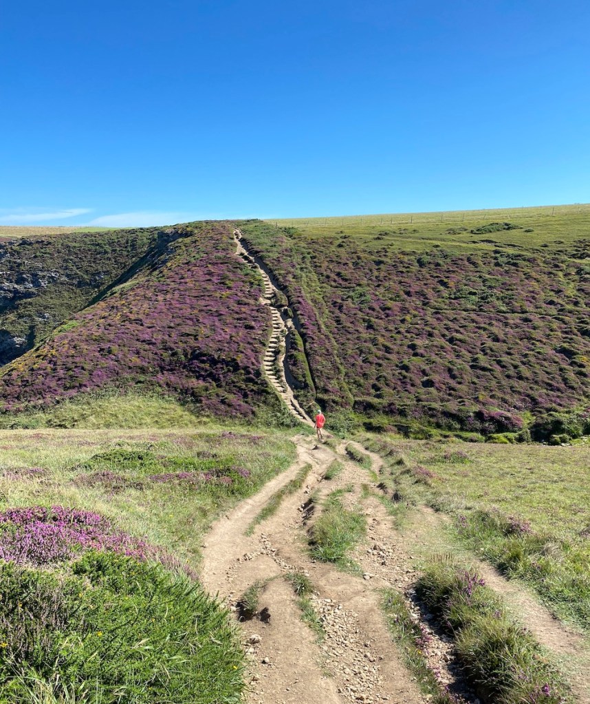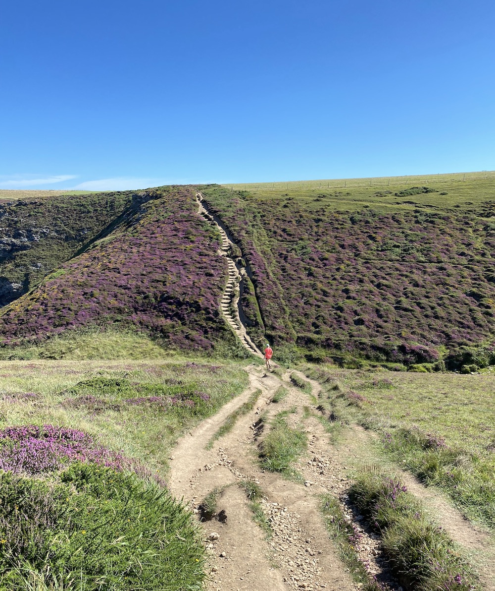 The South West Coast Path has been in my life for as long as I can remember; hoisted aloft my father’s shoulders as we walked as a family on sunny days, ducking branches and giggling at rabbits on the path. It’s always been my place of refuge away from the stresses and strains of life, but when I was struck down with mysterious pain through my body in my early twenties, it was a place to seek respite and solace for both my mind and body. As my pain turned chronic and with little answers from doctors at the time, my mobility gradually lessened, and I could only shuffle short stretches or be driven to path lookout points by family or friends. In these dark times it was the path and the sea I returned to. It soothed me, gave me strength and put my issues into perspective amidst the roiling seas and the trail that showed the passage of seasons. The visible change in nature reassured me that nothing is permanent, and that every tricky path and slippery climb will be rewarded with a view and an easier walk on the other side.