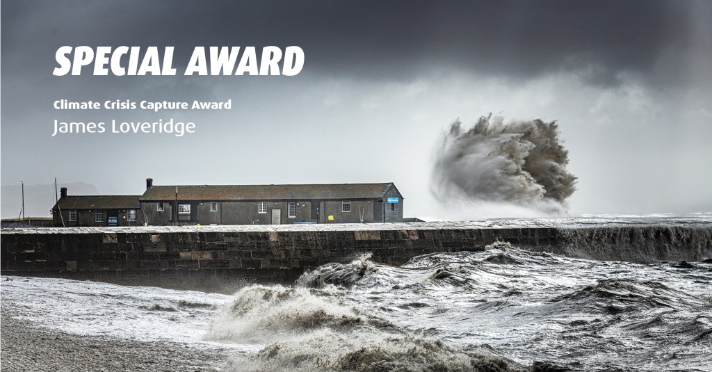 Matthew Pontin, Creative Director of Fotonow who judged the Award said,“There’s something really explosive about this image. I love how the nature of the rising wave sits alongside the building, making it look so fragile compared to the sea. The brooding sky above is a reminder that the climate crisis is hanging over us, demanding we take action.”