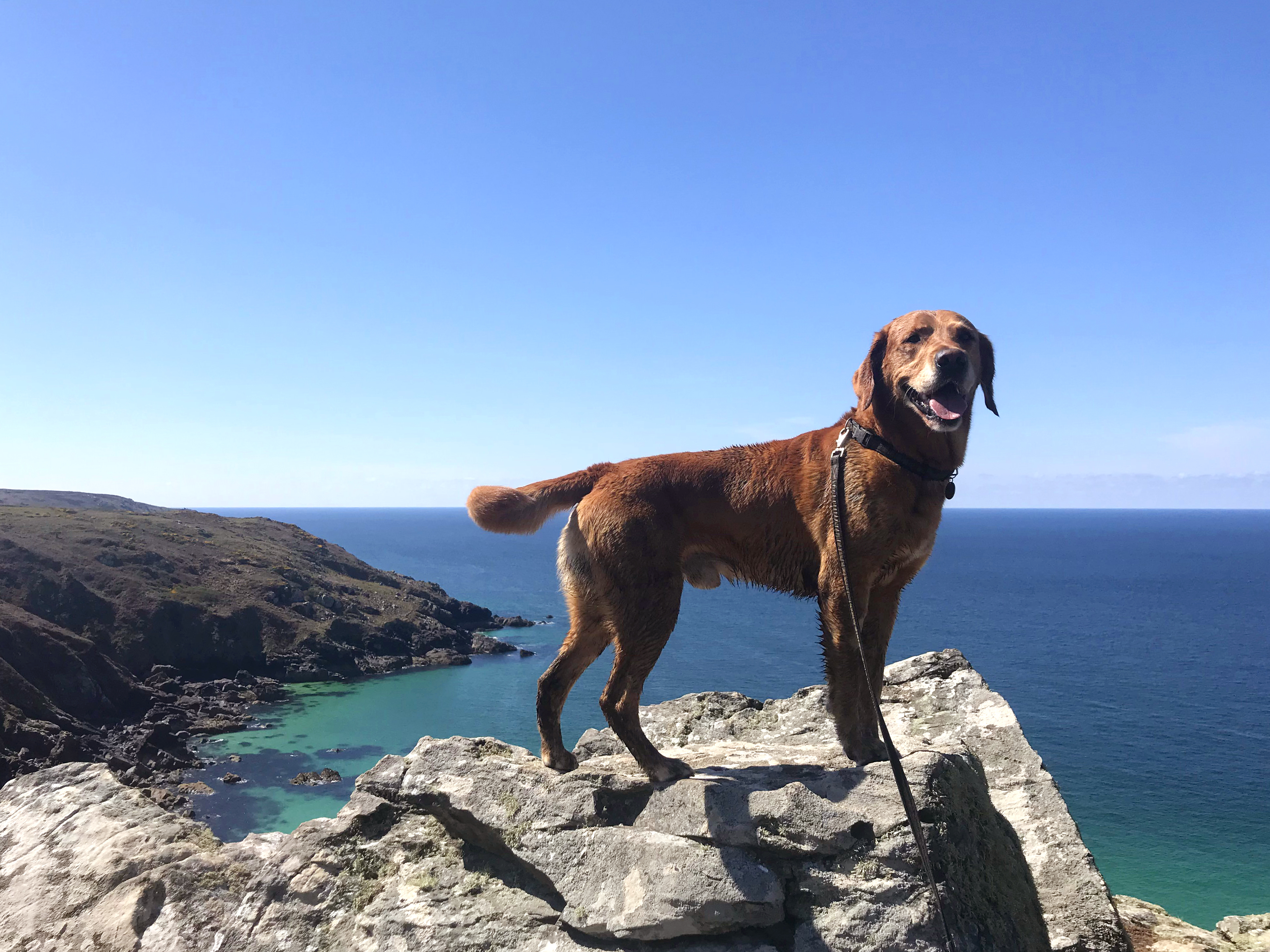 You can join the Coast Path from various points, but Rudy likes to start in Zennor and make his way along to the The Carracks. This gets the most challenging rock clambering part completed first. Along this stretch, we like to pause at Zennor Head and take in the stunning views. It is quite close to the edge in places though, so Rudy is always kept on a short lead. There is, however, good access to a small cove in one section where he enjoys some freedom to run and a swim in the sea.