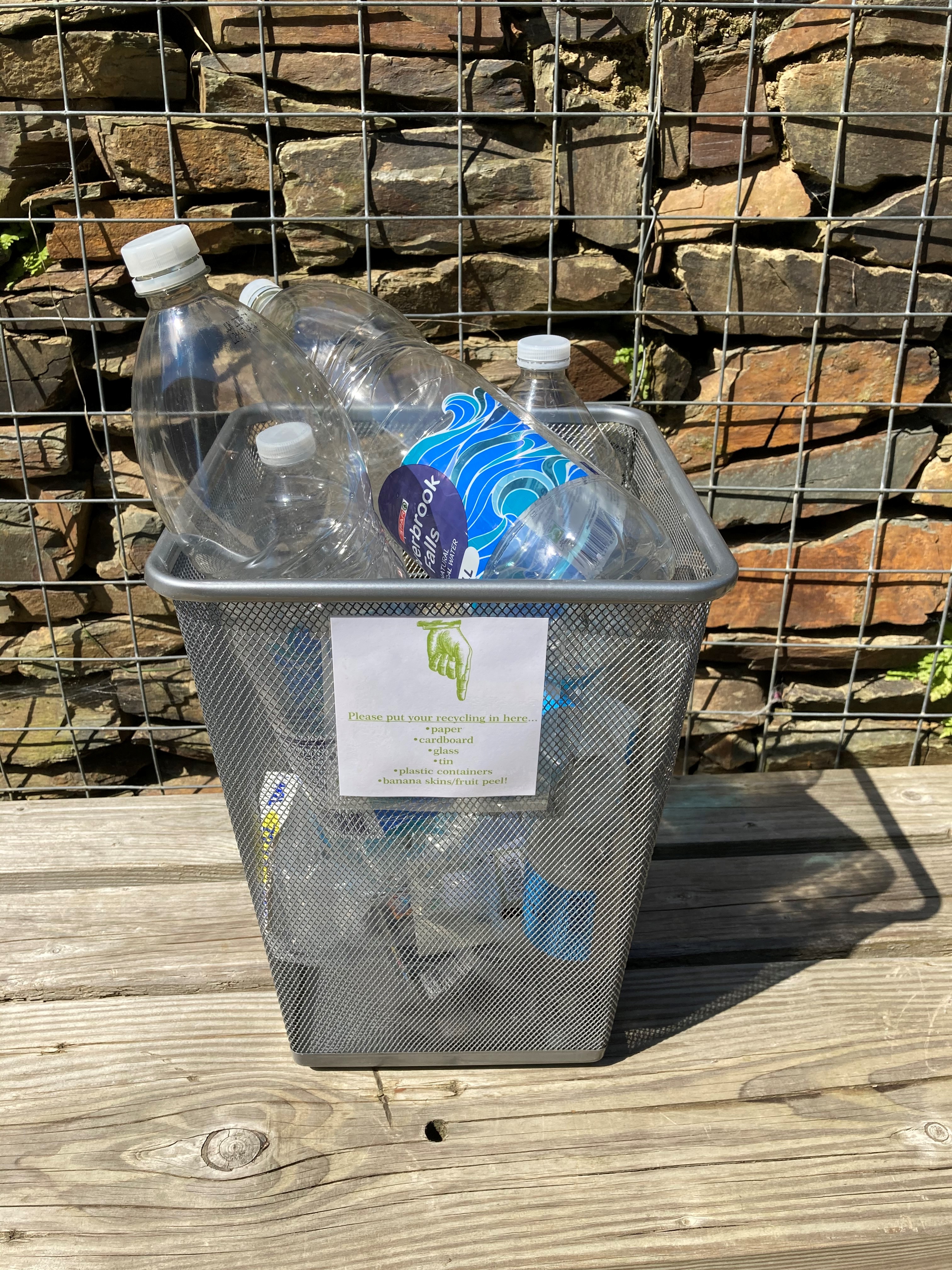 - Refuse – The best way of saving overproduction is to not buy it in the first place. Eg – we chose not to have a dishwasher – one more ‘thing’ to buy that uses electricity – we wash up by hand using a small bowl of water that then goes onto the plants. I have a total war on single use plastic bottles – we offer a free,metal reusable bottle to try and persuade guests to give up the habit too.