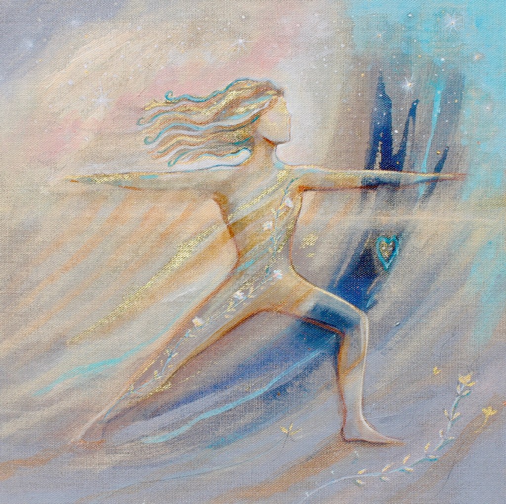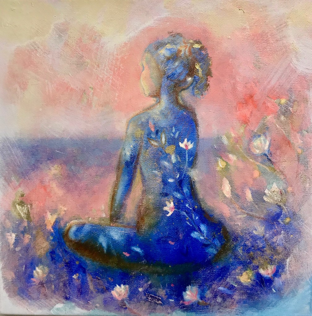 My home studio is on the South Devon coast near Salcombe where I live with my partner, son and our dog Bertie. I have been a painter and illustrator for over 20 years. My work explores the relationship between our emotional wellbeing and connection to nature. The figures I paint transcend every-day life, they embody the freedom of the coast path and the freedom I gain from practicing yoga. Sketching small coloured studies on the Coast Path inspires me to paint my larger figurative works. I aim to immerse you the viewer in stillness, to take you on a journey back to inner wildness and the wider patterns of nature. I believe that in the ‘felt’ experience we are part of something bigger when we stand on the shore and look at the sea and sky. If you’re lucky you may feel the sun on your back.