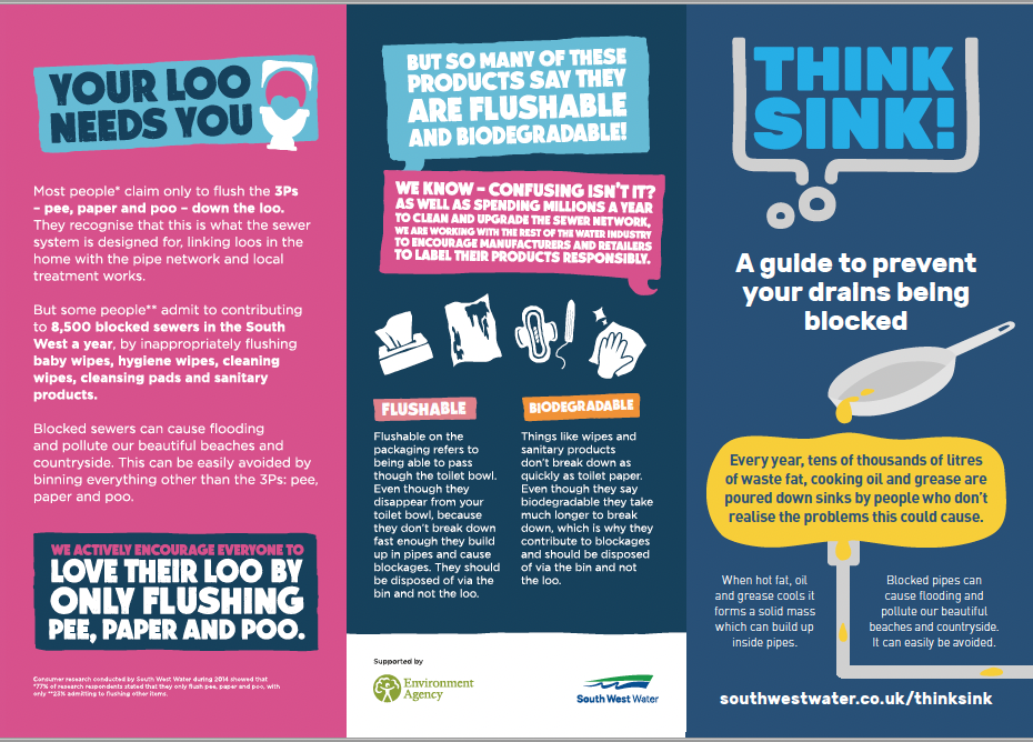 South West Water are continuing to invest to maintain and improve the sewer network to help reduce the number of blockages, but we can’t do it alone, we need your help.