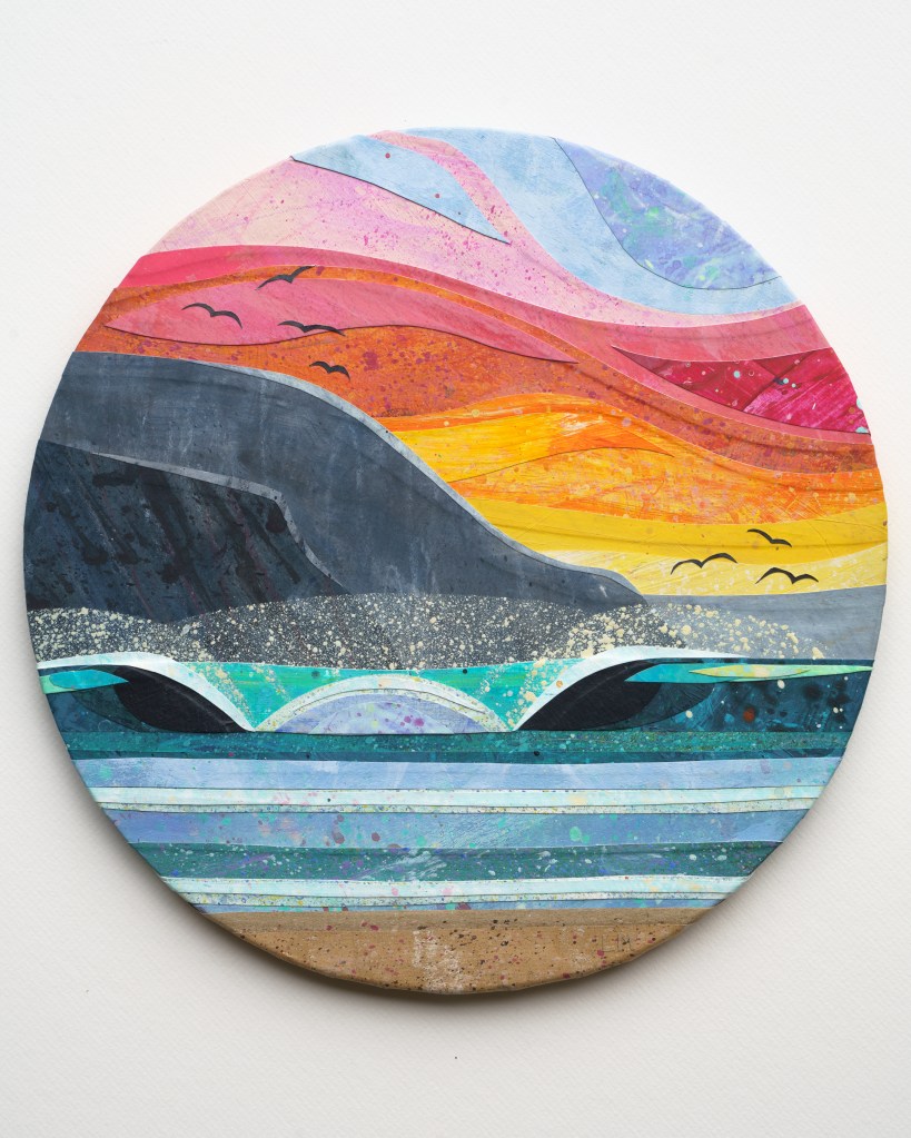 My biggest inspiration without a doubt is the Cornish coastline and my experiences there and in the water. Since moving to Cornwall when I was 10, the beach has always been my favourite place to be. Iโm mad about surfing and bodyboarding and have spent a lot of time over the years searching for waves around the Cornish coast. Itโs usually during these times hunting for waves or being in the sea that I get inspired to create new artworks. The ever changing light and weather conditions we have here in Cornwall offers endless light bulb moments for me.