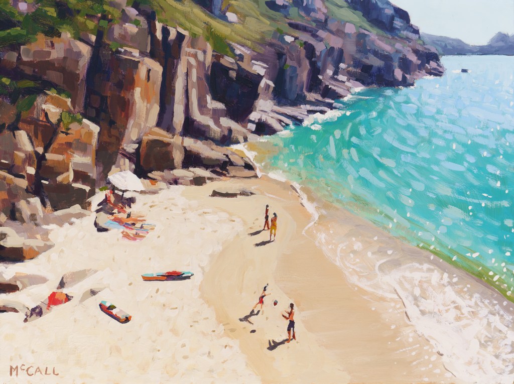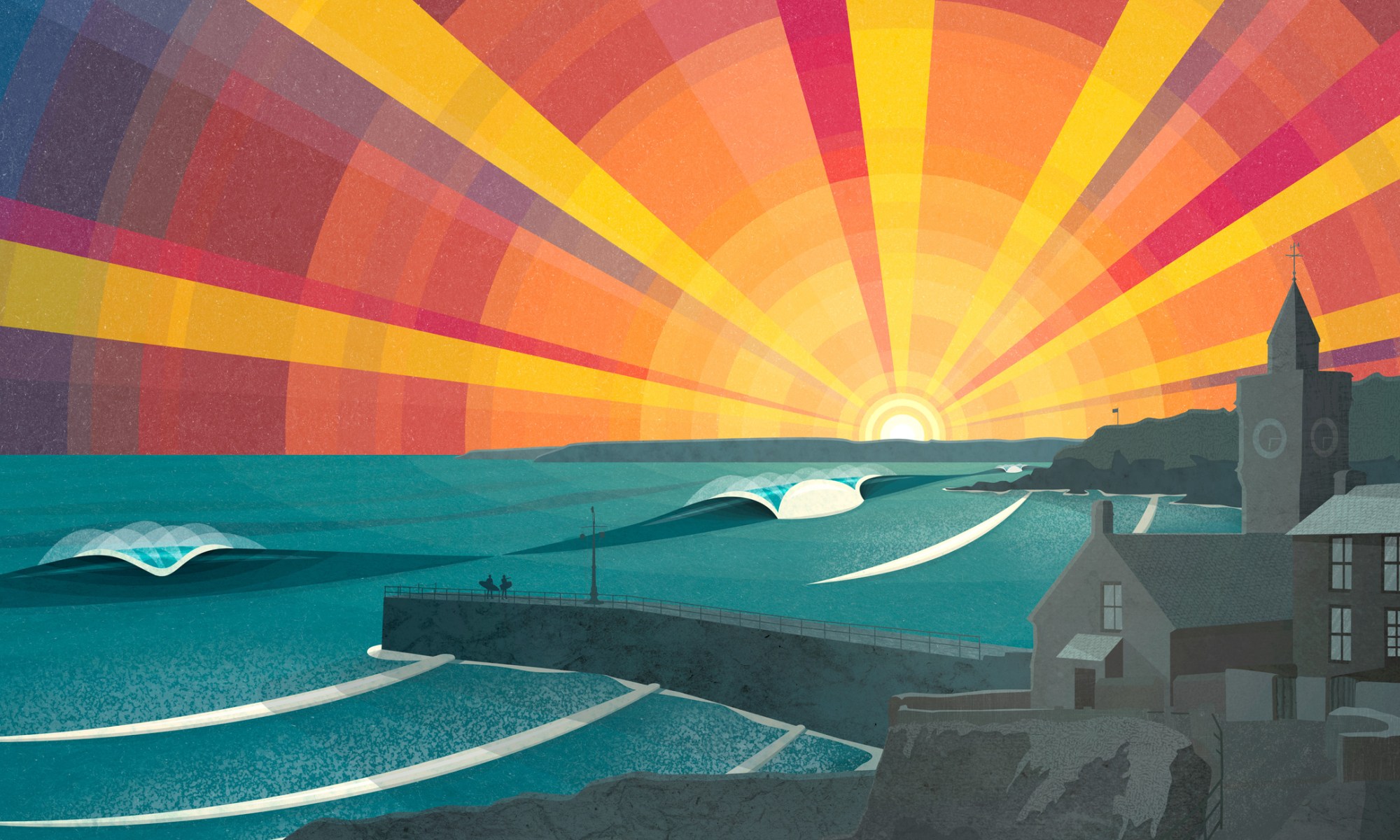 Laurie McCall is a Cornwall based artist and photographer known for his stylised seascapes, oil paintings and wave photography. Laurie studied Graphic Design at Falmouth University before becoming a graphic designer. He then turned his hand to art where he combined his knowledge of design and his love for the Cornish coastline and its surf. Heโs probably most well known for his โCornish Surfscapesโ series of prints and collages, which depict idealistic visions of his favourite surf beaches through the use bold colours and clean lines.