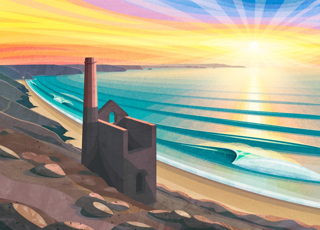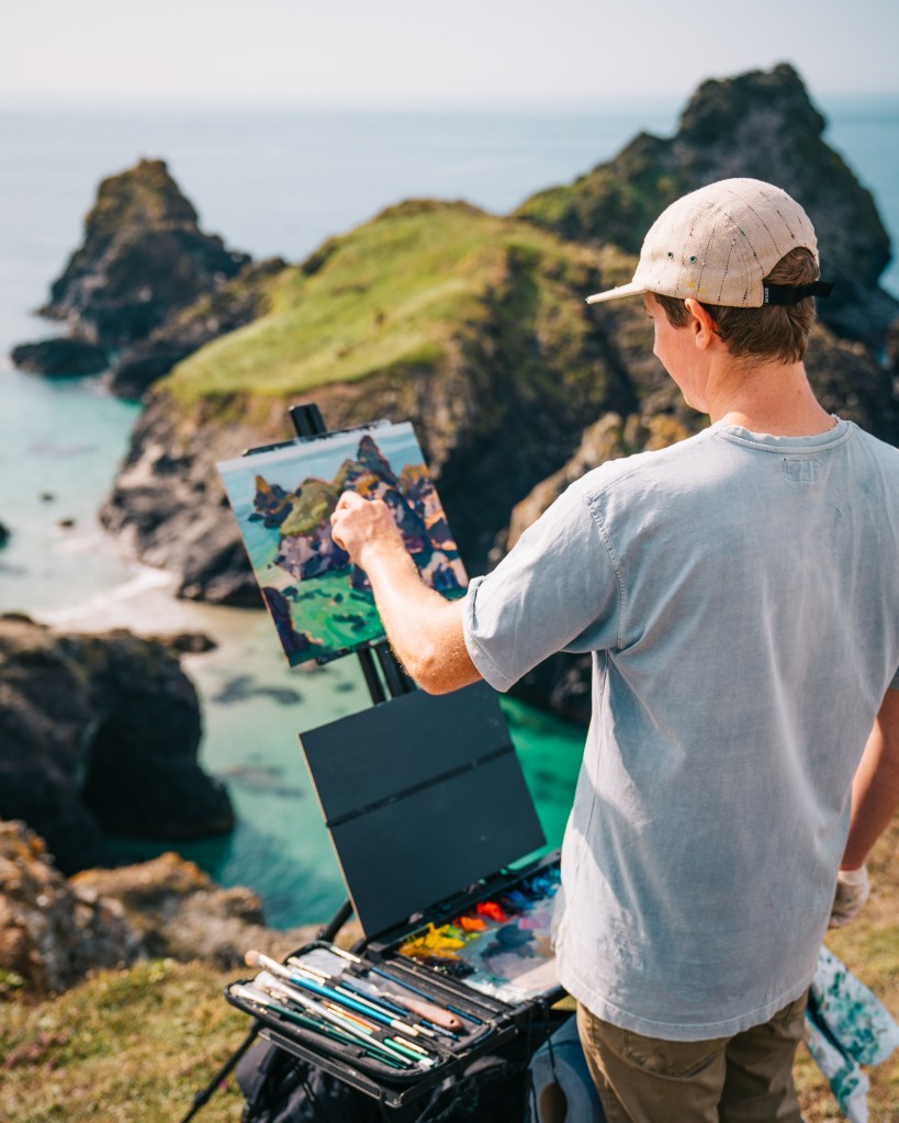The coast has practically shaped my artistic style and my business. The majority of my work has a coastal theme- so I have a lot to thank it for! If Iโm out taking reference photographs for paintings, nine times out of ten, the coast path allows me access to the vantage point I have in mind for the final piece. I also use it as a place to recharge and refocus; if Iโve been stuck indoors for too long, Iโll go for a surf or a walk on the coast path and return ready to get back to work.