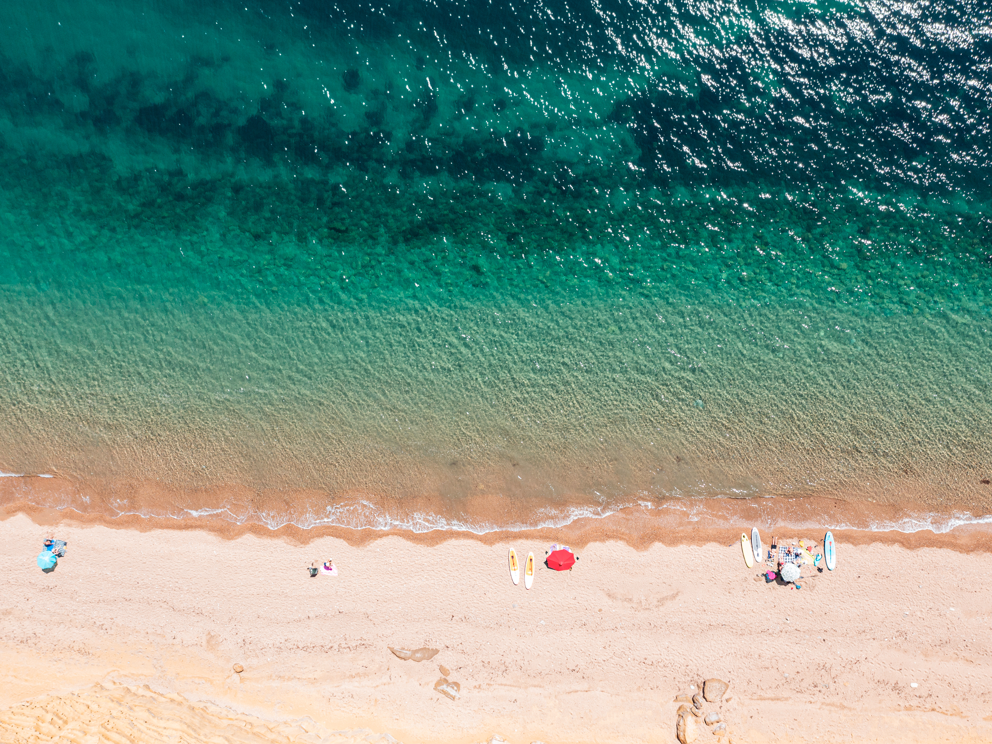 Creativity is undulating as I flow from being a wife and mum to a full-time artist. I am blessed to live within a 10-minute walk to the beach, and my studio overlooks the Jurassic Coast. Living here enables me to channel my creativity daily. I don’t think I could paint anything but the sea, and since discovering drone photography, this aerial perspective has opened a window further into my creative mind, giving me full scope to capture the joy of coastal life from above.