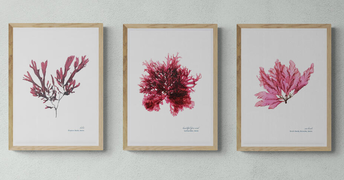 ‘Seaweed varies immensely in its colour, texture and form and I have tried to reflect this in my prints. I have created bold, vibrant prints, posters and cards from the original pressings, carefully maintaining the natural beauty of the seaweed. All my products are made in the UK, are biodegradable and produced with carbon-balanced printing.’