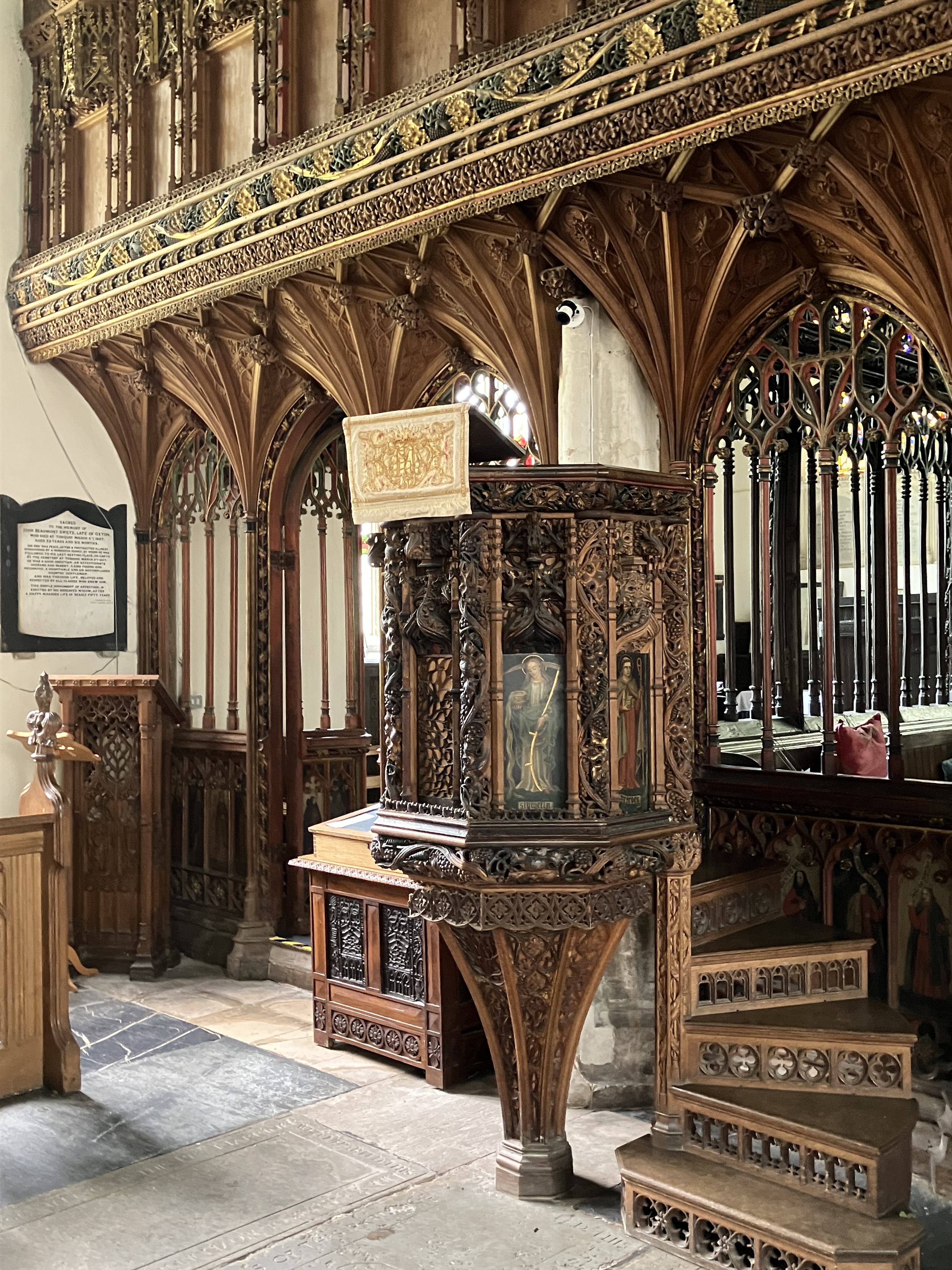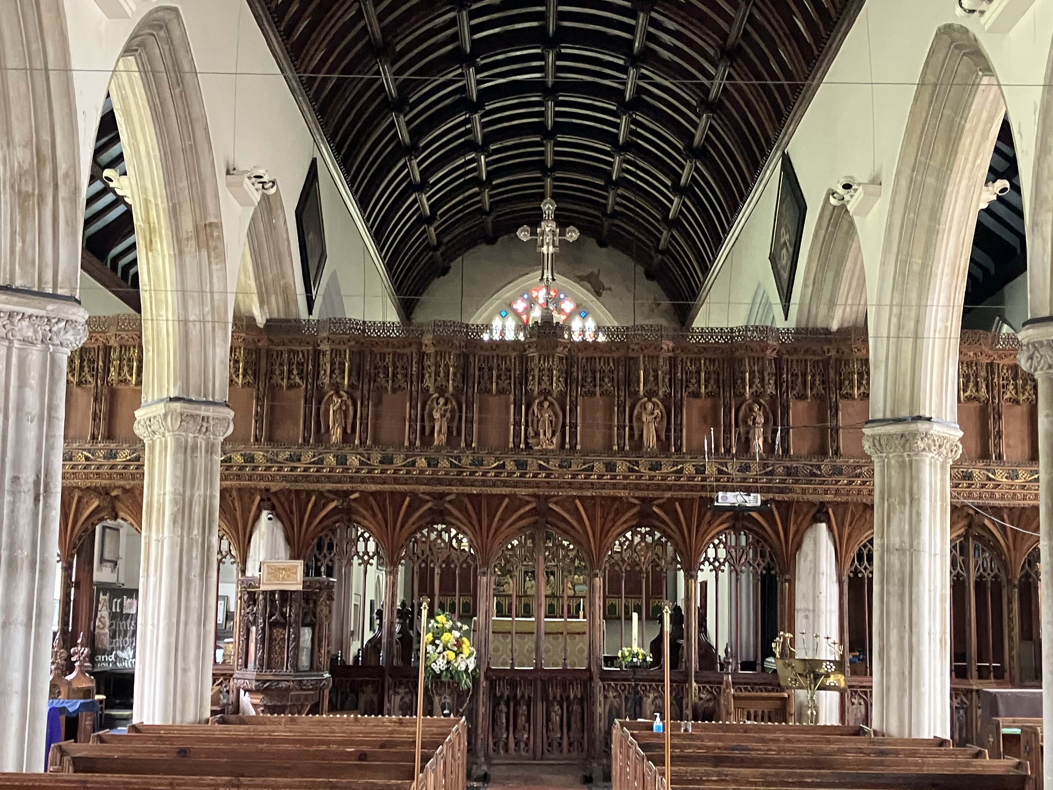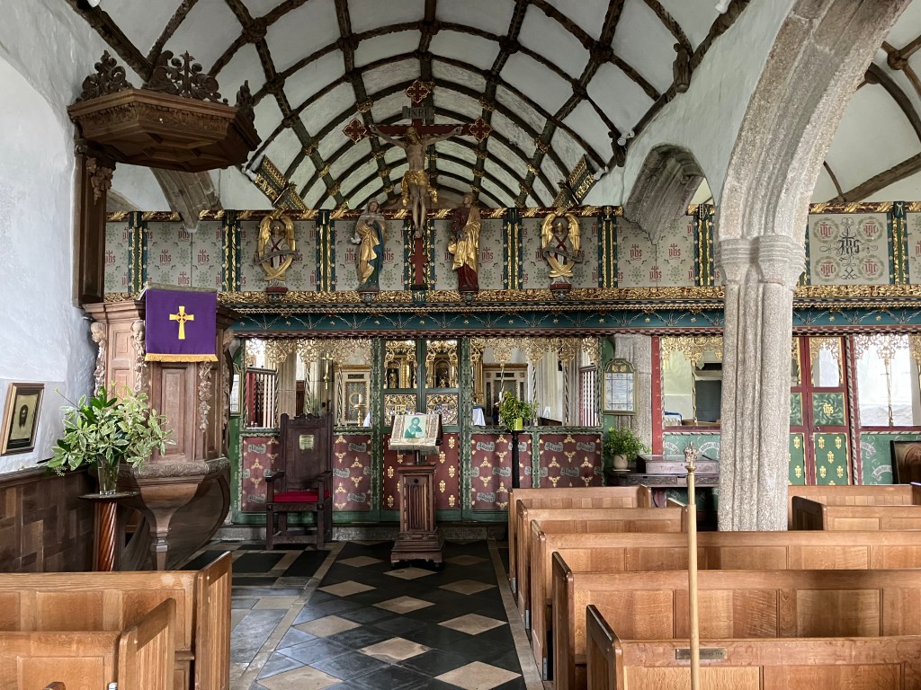 Blisland Church of St Protus and St Hyacinth, on the western shoulder of Bodmin Moor, gives a taste of what we have lost. This Norman church was extensively renovated in the 19th century with a restored rood. The poet, broadcaster, and celebrated campaigner for Britains historic buildings, John Betjeman, considered Blisland to be the loveliest church in the West Country. A region he knew well.
