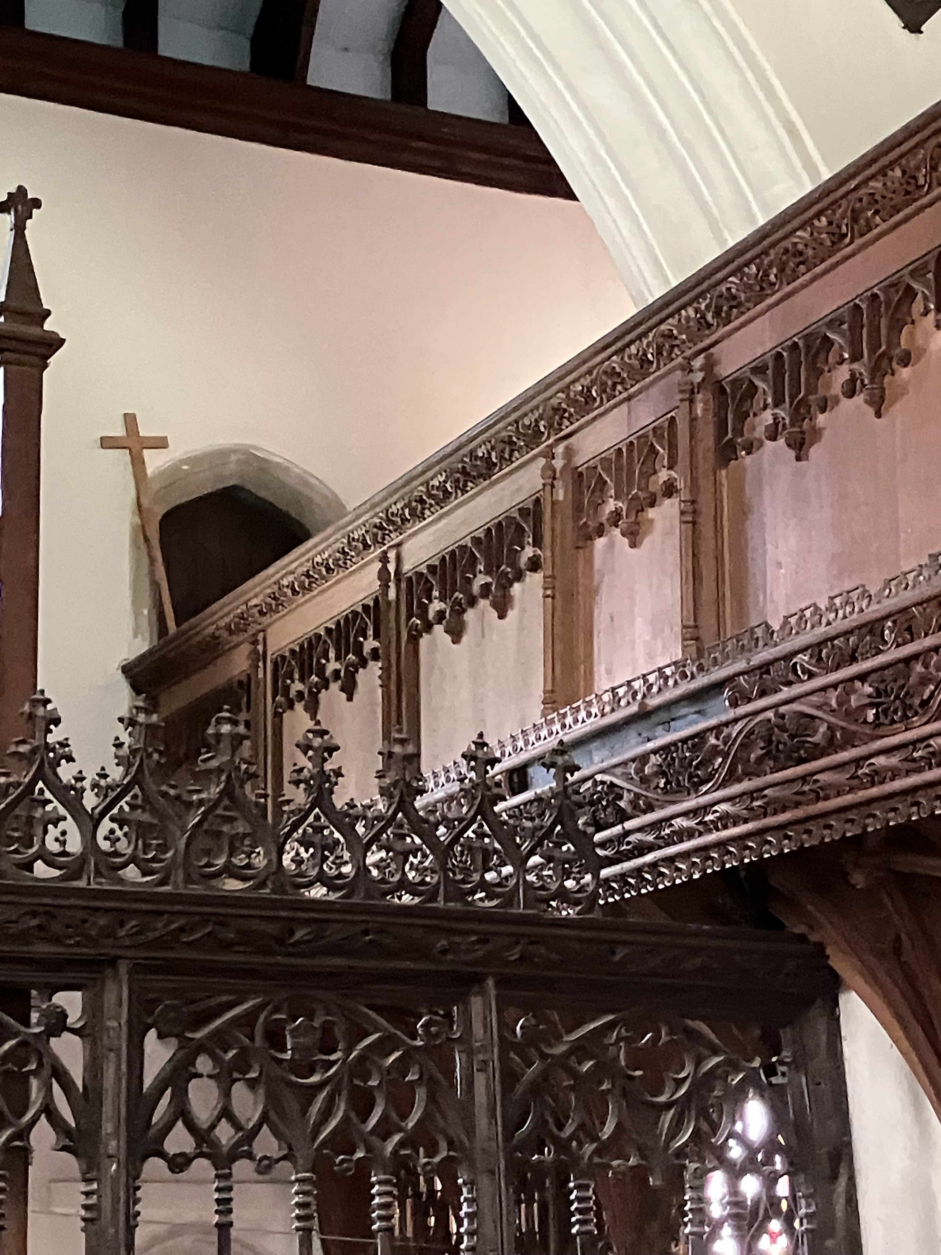 Kenton All Saints is one of the few churches in the country with its original rood loft intact. Kenton is a couple of miles west of the Exe Estuary not far from Powderham Castle, itself dating from the 14th century and home of the Earls of Devon. The purpose of Kenton’s rood loft was as a minstrel gallery, it is believed to date from the 1470s, although the church is a century older.
