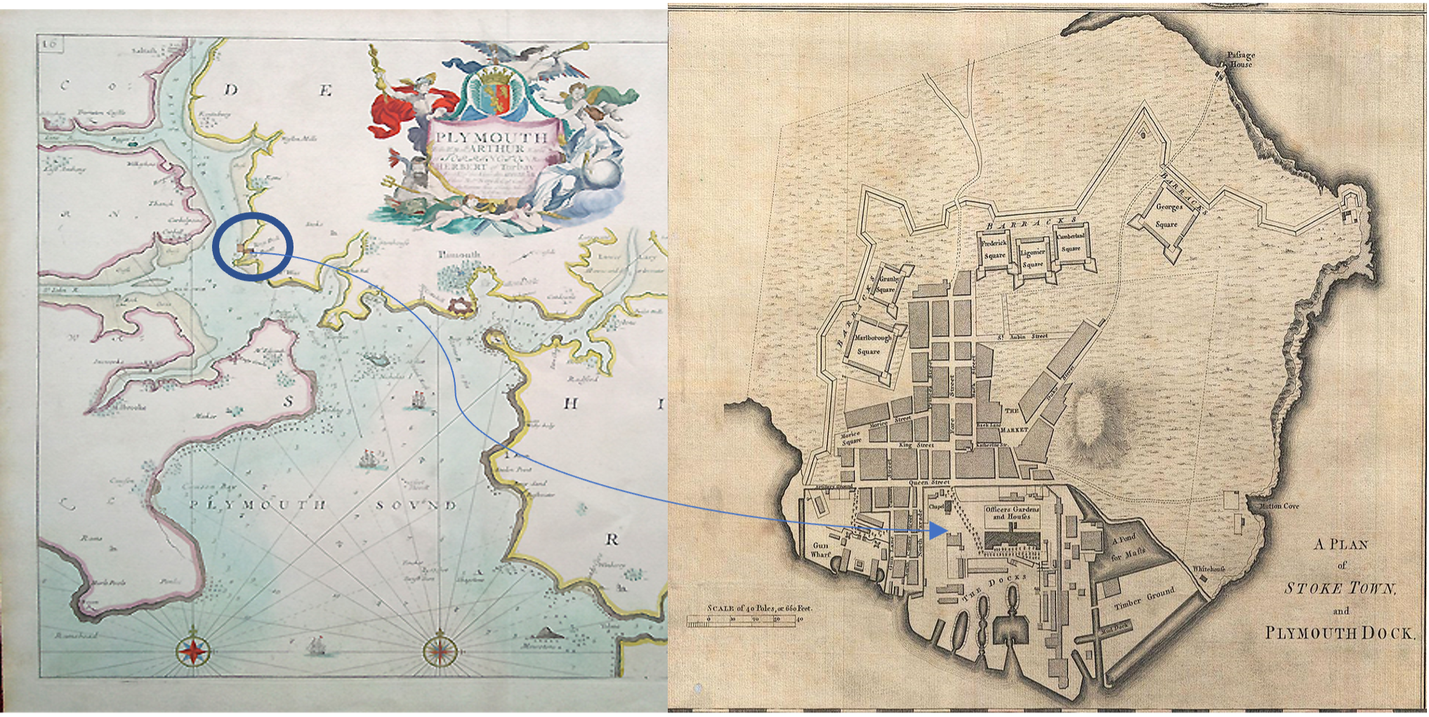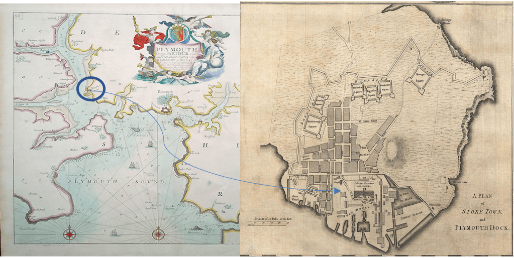 Something had to be done, and fast! In 1690, the Navy Board contract expert stonemasons from Portsmouth to oversee the construction of Plymouth Dock, (later renamed Devonport), on the Hamoaze on the River Tamar.