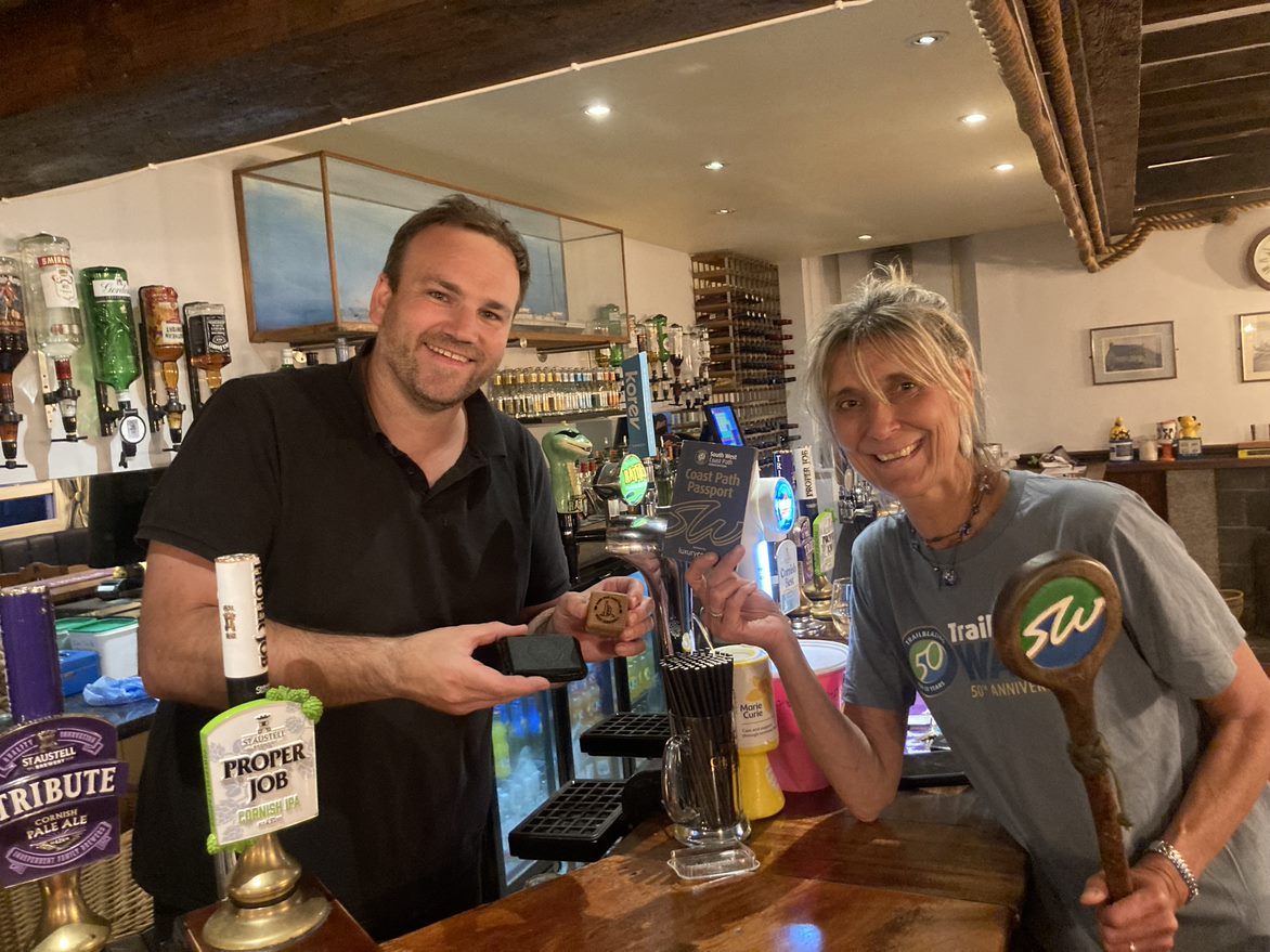 The Five Pilchards Inn, Porthallow – We marked that fact that the walking stick had travelled a full 315 miles to the half way point of the Trail with a refreshing drink and a Passport stamp from Lou – a stop-off point you simply can’t miss!