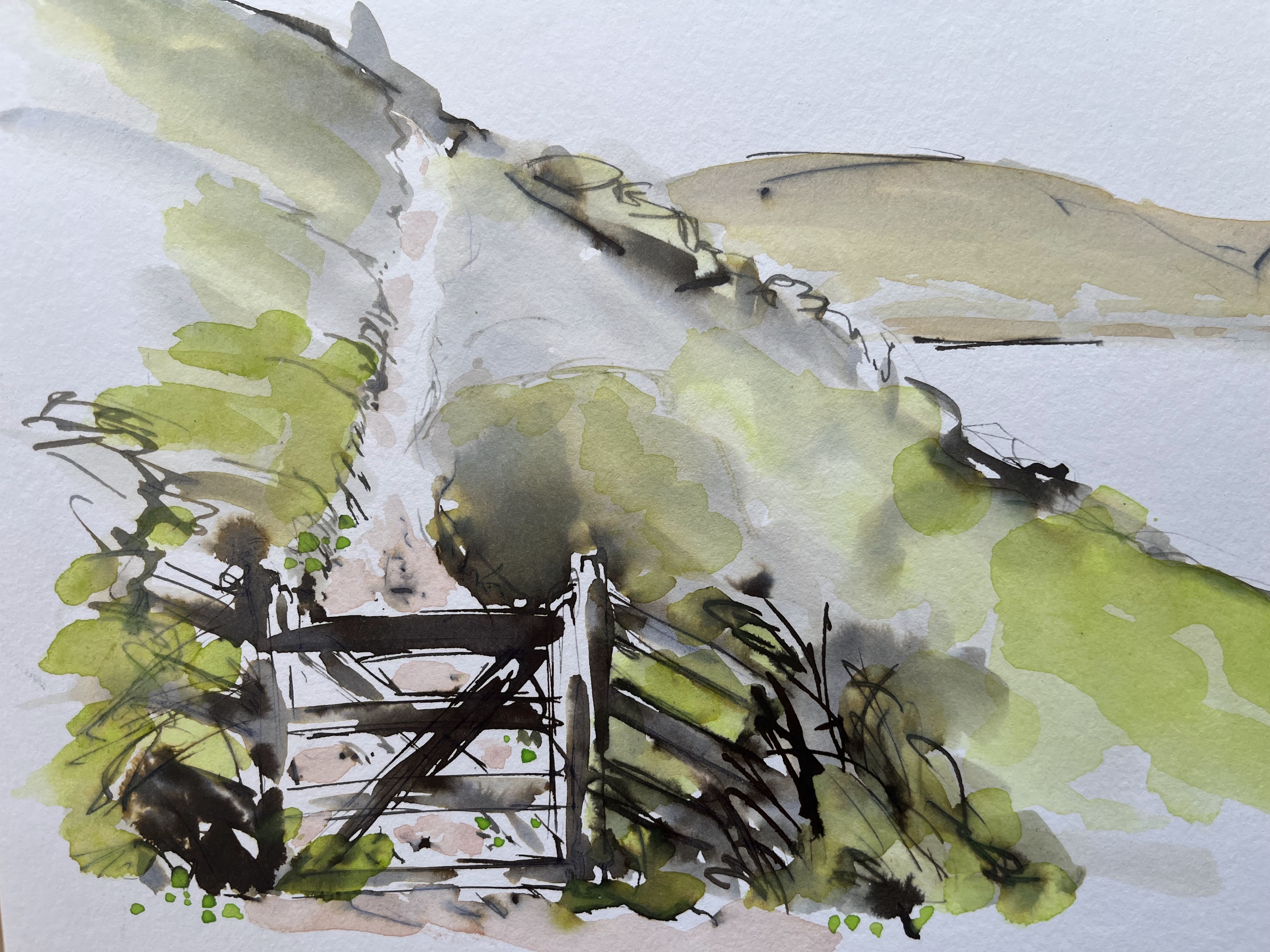 I was also surprised by how walking and noticing sparked a creative magic, unlocking new ways of thinking. I began to notice how, after time on the path, my brain buzzed with ideas, my sketches became bolder and, back in the studio, my paintings had a new energy.