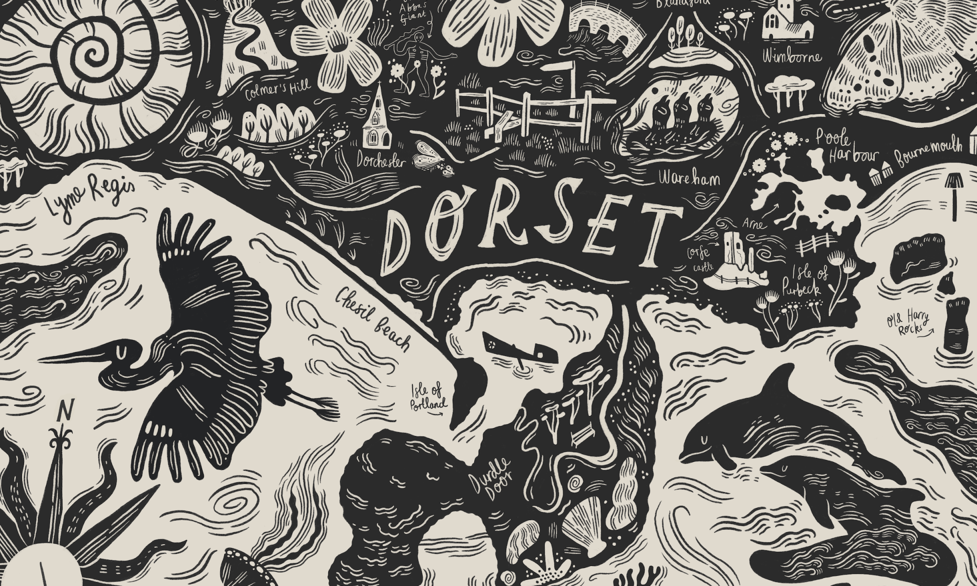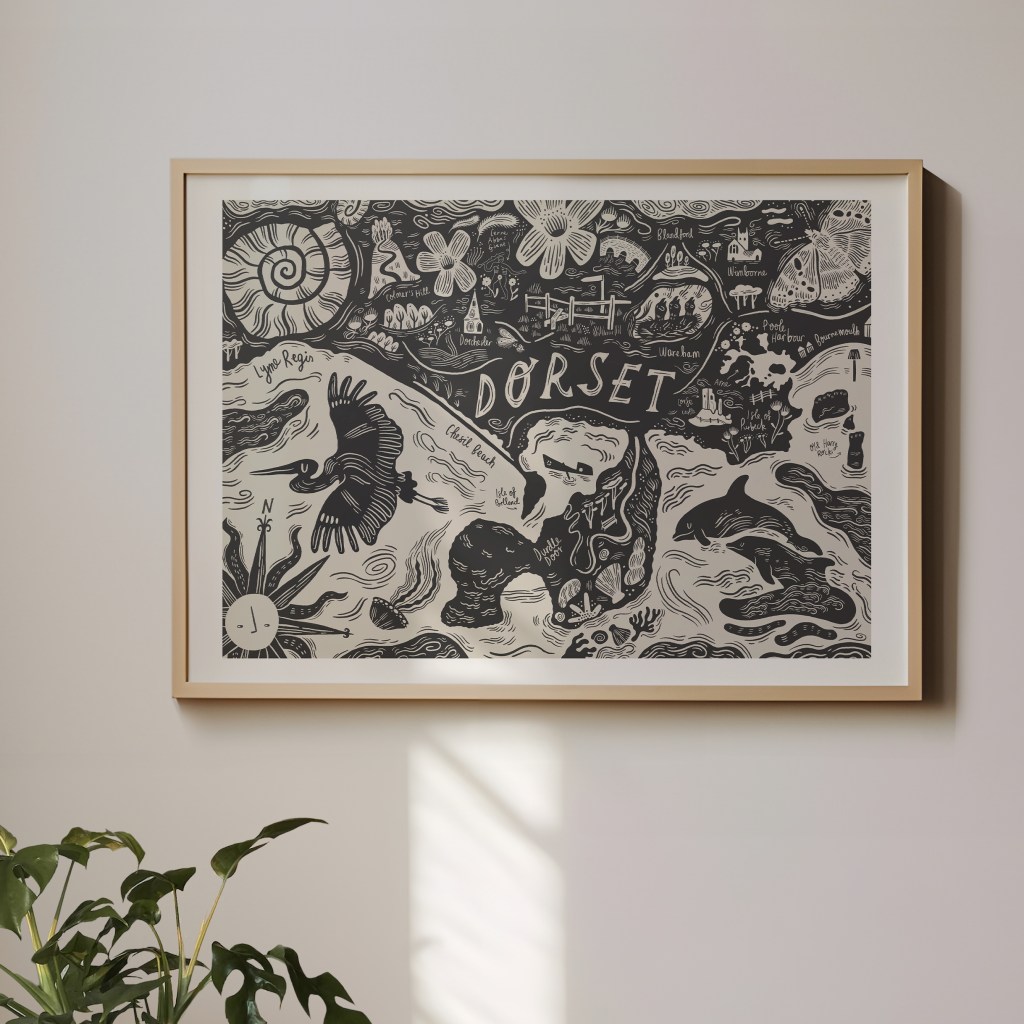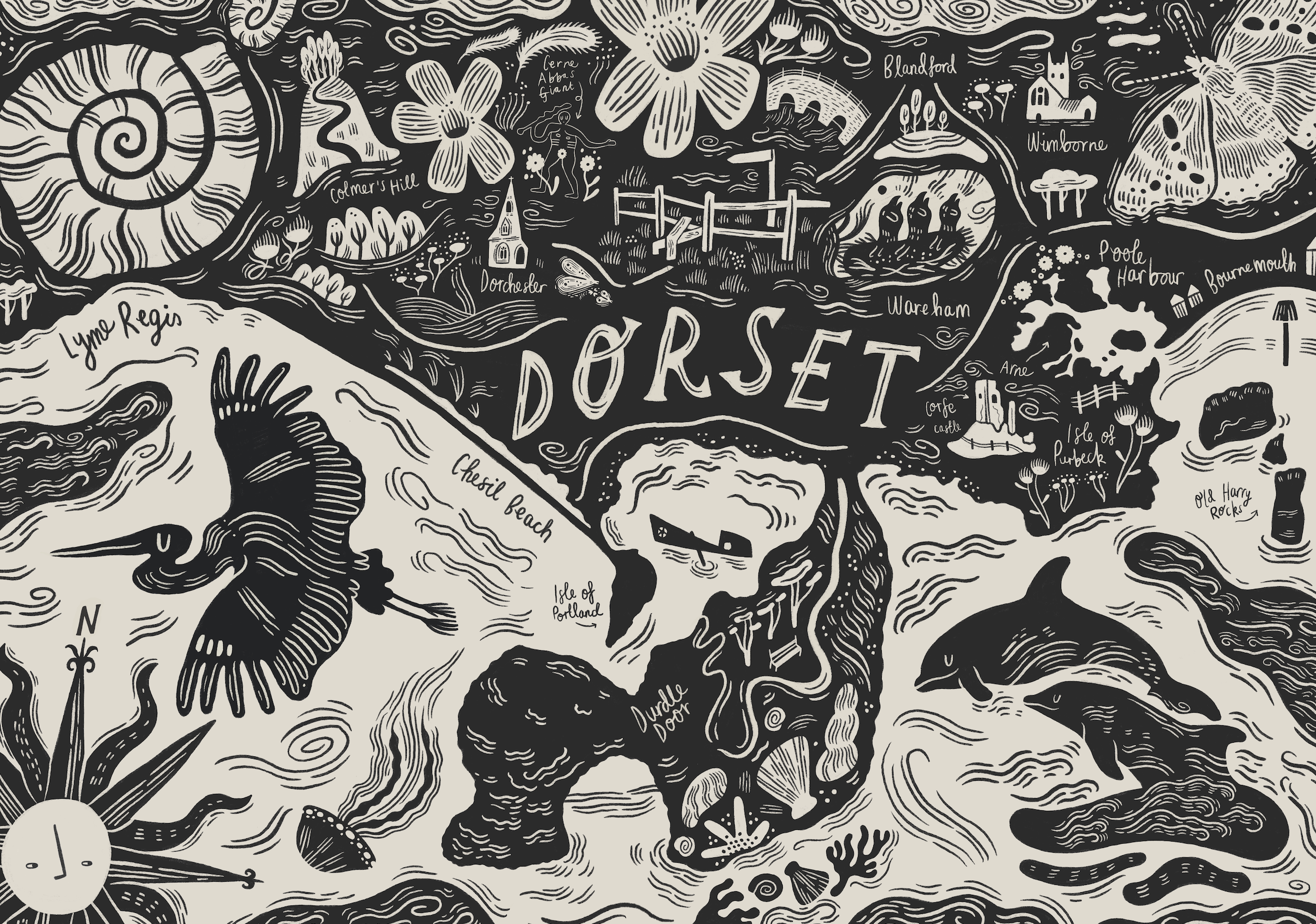One of my most recent illustrations is an illustrated map of Dorset which I sell as large art prints from my website. This map features many of my most cherished places, from Arne to Lyme Regis – it was quite tricky to decide which places to highlight on this map as there are just so many gorgeous places!