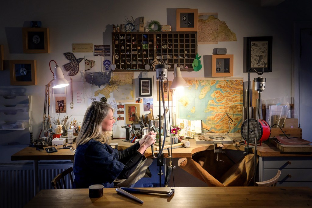 Photo: Jeweller Hannah Louise Lamb in her workshop, January 2024. ยฉHelen Pugh Photography