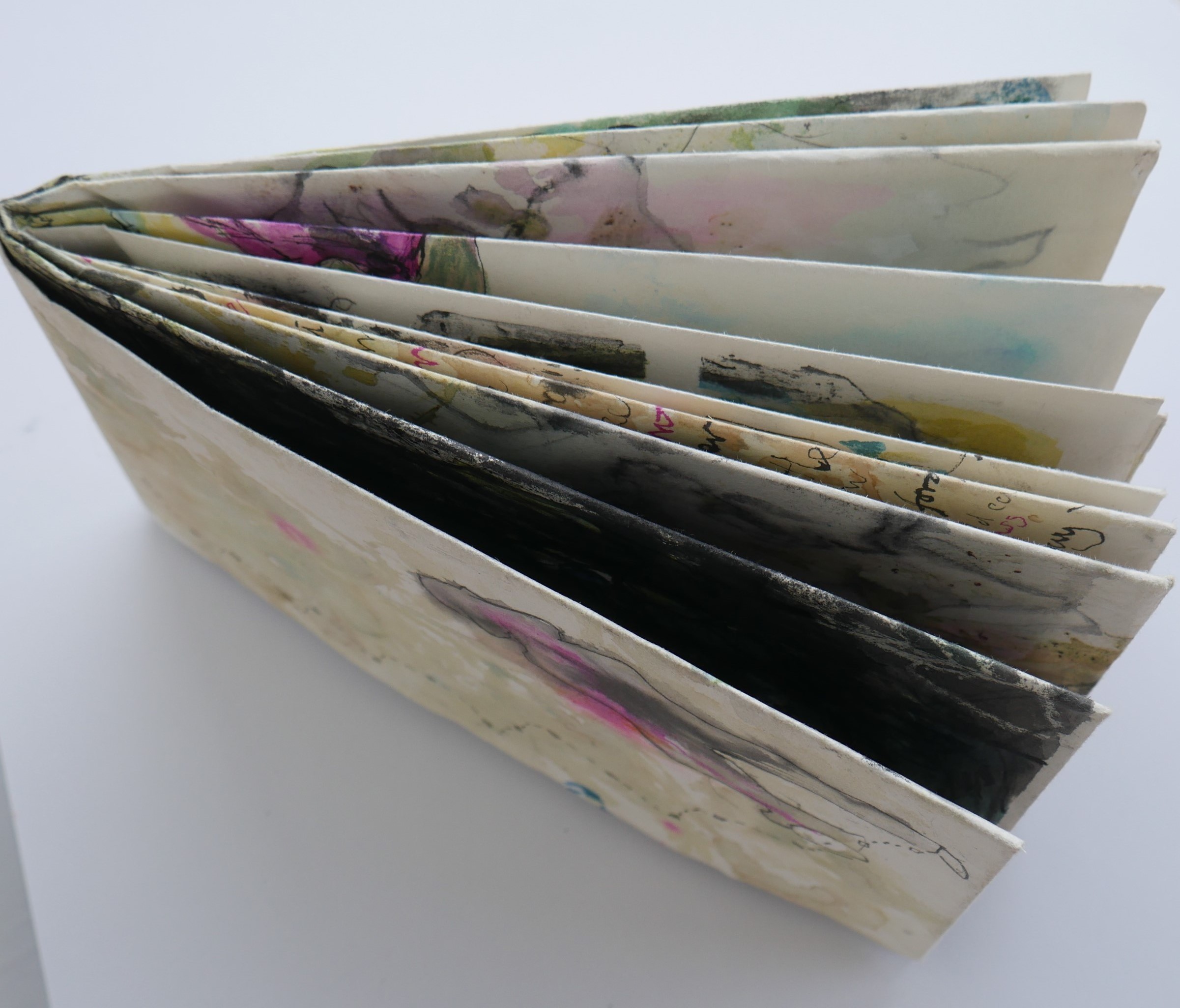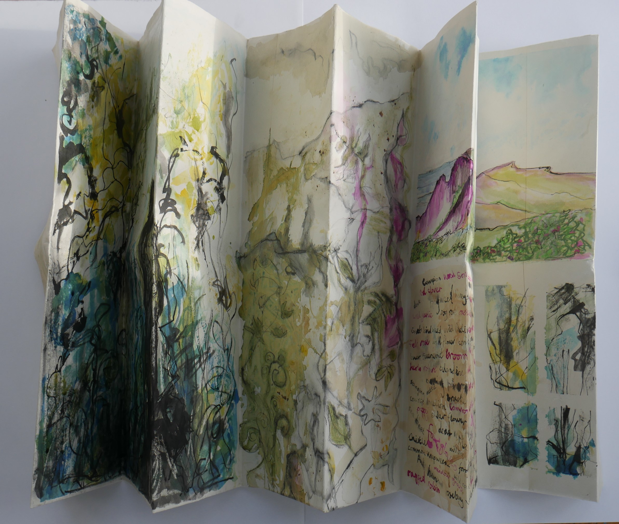 During the spring and summer I made a work called A Walk on Paper. It was a visual diary of my walks on the South West Coast Path and took on the form of a map. I incorporated dyes from plant life, to colour my paper.