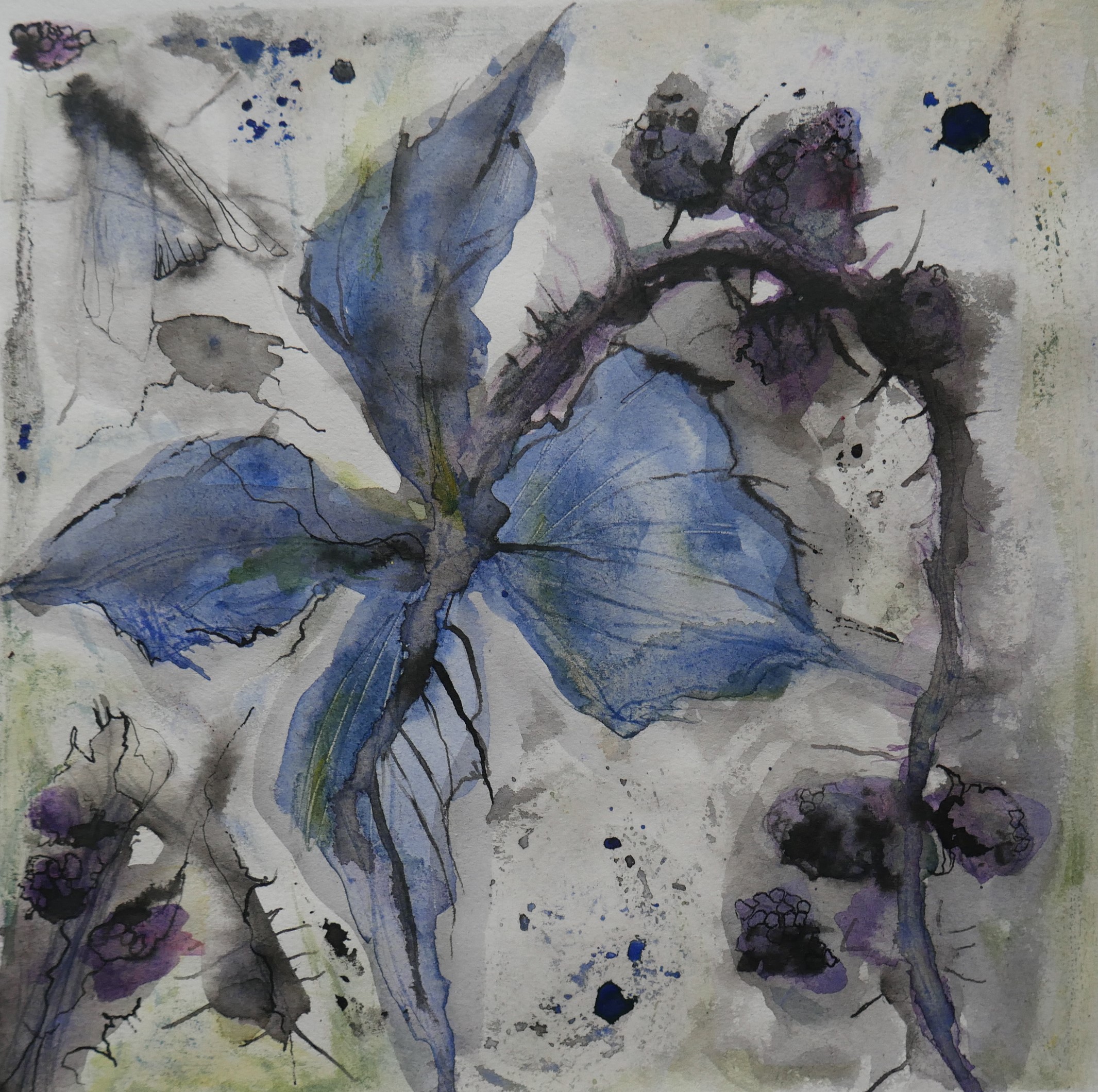 As part of my degree, I am building a body of work focusing on plants and creatures, in my immediate environment, that might be considered unpleasant or hazardous, such as brambles and spiders. I am exploring their spirit, symbolism and beauty through using inks and water, allowing fluidity and spontaneity, contrasting with structured drawn line. The thought process behind this work began after being bitten by a tick and becoming ill with Lyme disease. My artistic attention was unexpectedly turned towards these tiny creatures that were able to have such a surprising impact on my life.