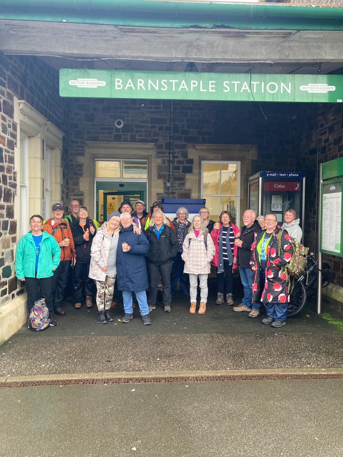 The initial group included Richard, Nick, Rachel and Ron and Natalie from Devonmind and set off from Vellator Quay at 8am, it was drizzly. We made it to Barnstaple Train Station at 10.30 and met the Ilfracombe Friendship and Social Group, Alex from SWCPA and Toni from Sunrise Diversity. The โtrainโ arrived at Instow and we were joined by walkers from Healing Steps, Walk This Way (Fern Centre) and Sunrise Diversity, then it really rained.