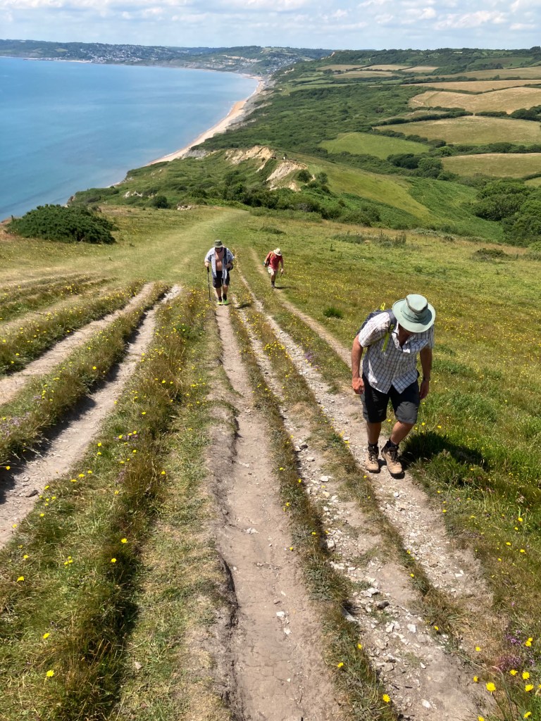 I particularly love the lines of the different paths cut into the hill portraying the different routes we all take, I think the picture also shows the effort required to reach the summit. With the Dorset coast in the background showing just how far we’ve come. I was lucky enough to forge ahead to get all my comrades in shot, I’ve taken hundreds of pictures on our walks but this is one of my favourites; endeavour, graft, companionship and a sense of achievement in one shot.