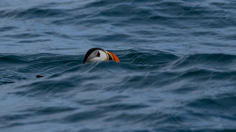 In this image, I like the way the choppy water makes the Puffin appear as if it’s hiding, adding some mystery to the photo. The secret to capturing an image like this is to always have your camera ready for action. You only get a brief moment in time, and being ready makes all the difference. Autofocus can be a pain in this situation; using manual focus ensures the bird is the subject rather than the choppy sea.