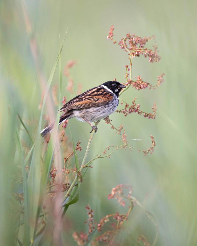 While I had my lens trained on a Heron at Marazion Marsh, this Reed Bunting landed a few meters from me for just a moment while frantically squabbling with another. I swung my lens around and managed to rattle off a few frames. This being my favourite. I was happier with this very rushed shot of the Reed Bunting than any of my heron photos – as I was able to capture a more artistic composition.