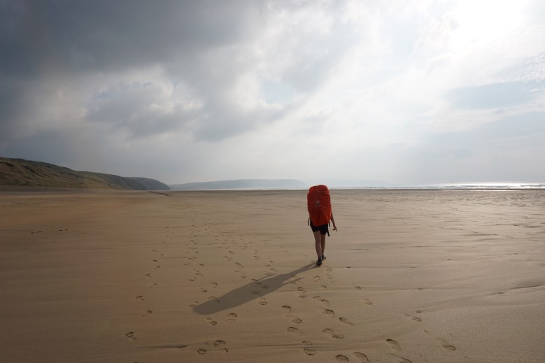 It was simply amazing to walk for meters along this stretch of sand, and the sunlight breaking through the clouds looked absolutely magical. The photo, with its many footprints, shows that other hikers had also walked along the beach that day, admiring its beauty just as we did. The moment captured in the photo was one of many wonderful experiences Ayla and I had on this journey, making it a perfect reflection of what we both associate with the National Trail.