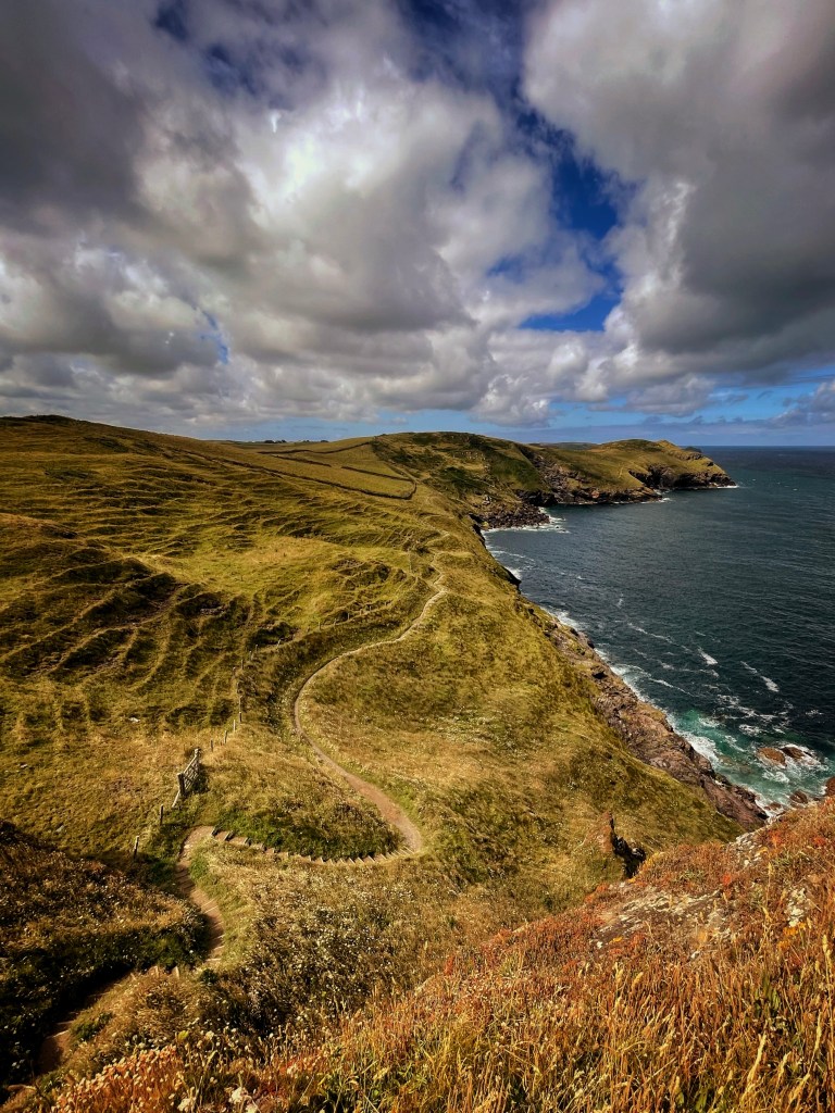 The photo was taken on the path leading up to Kellan Head – a section of the path between Port Isaac and Port Quin. It was taken on the 10th of July 2024 – day 12 of my thru hike of the path.