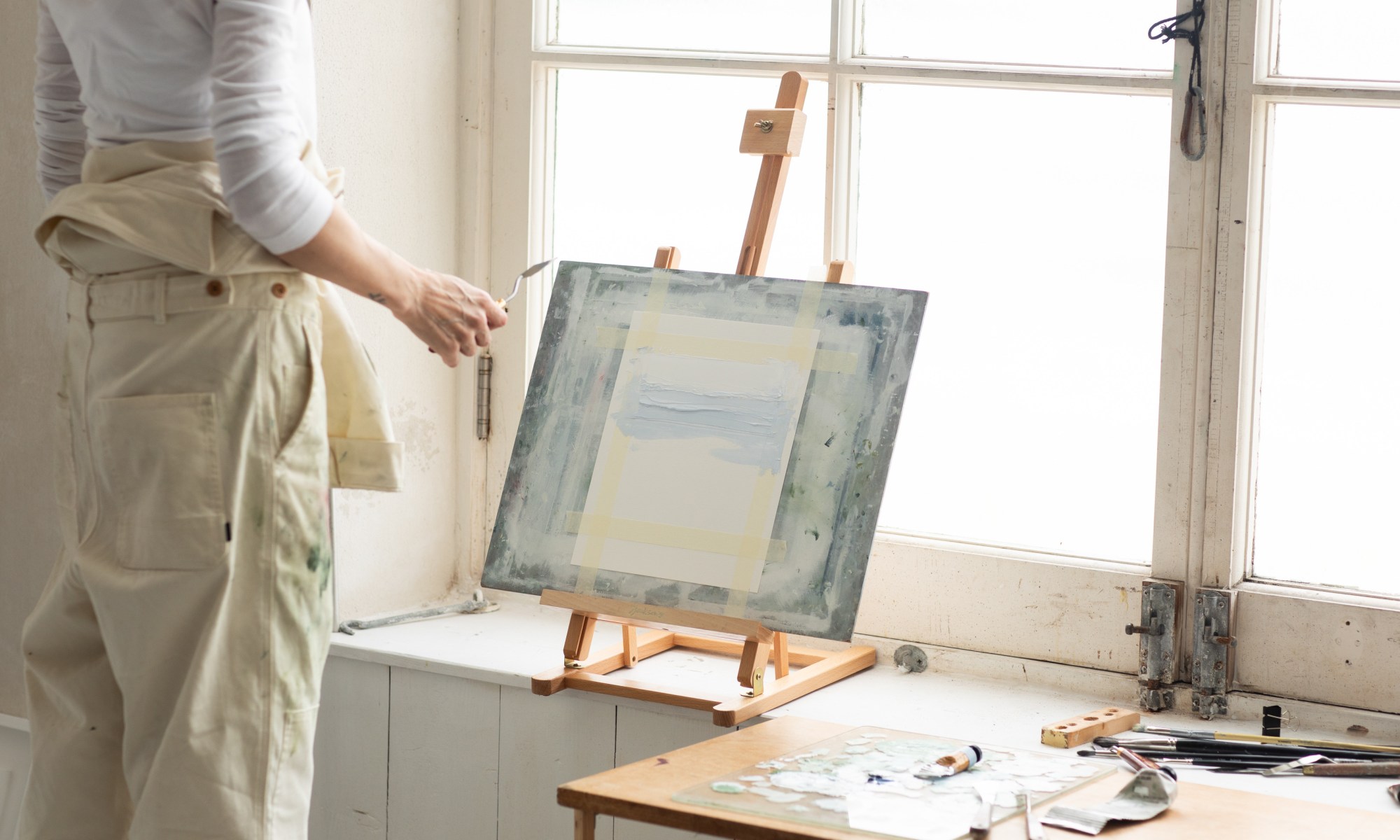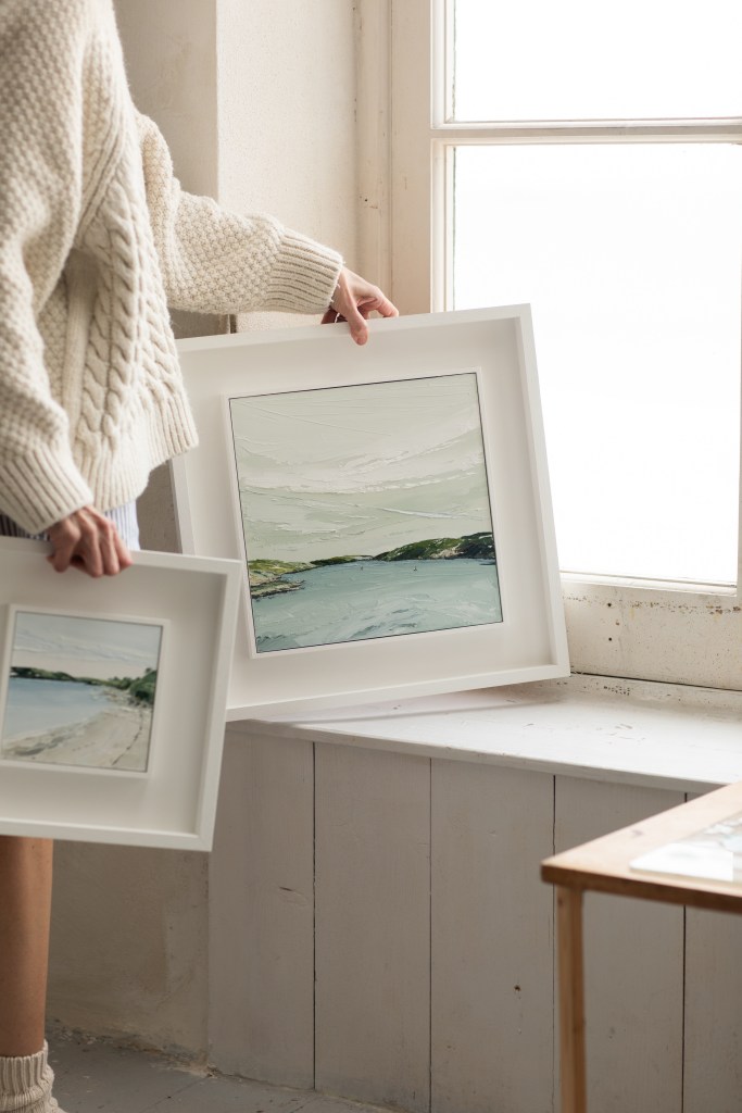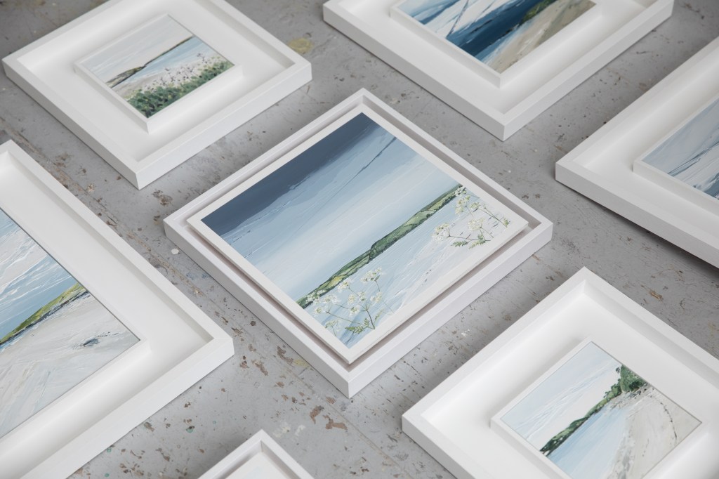 I am at my happiest when I am by the sea.โฏ My work is reflective of the tranquillity of nature, influenced by the solitary, contemplative experience of spending time on the coast path through the shifting seasons.โฏ I am particularly drawn to the calm serenity of spring, its diffused light, the diverse colour palette, the layered waves, the breeze through grass and the coastal wildflowers dotted along the path as the air begins to warm.ย