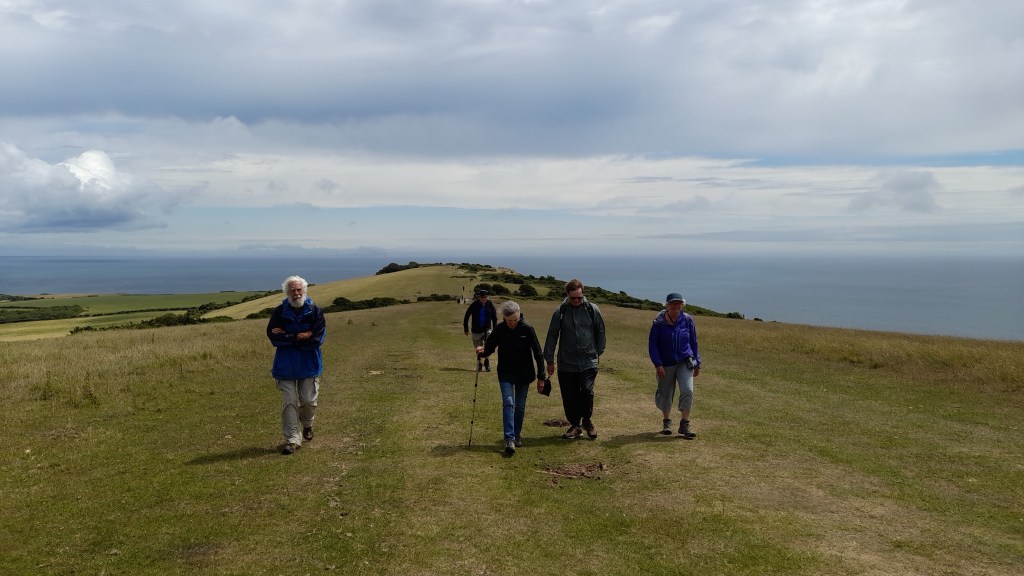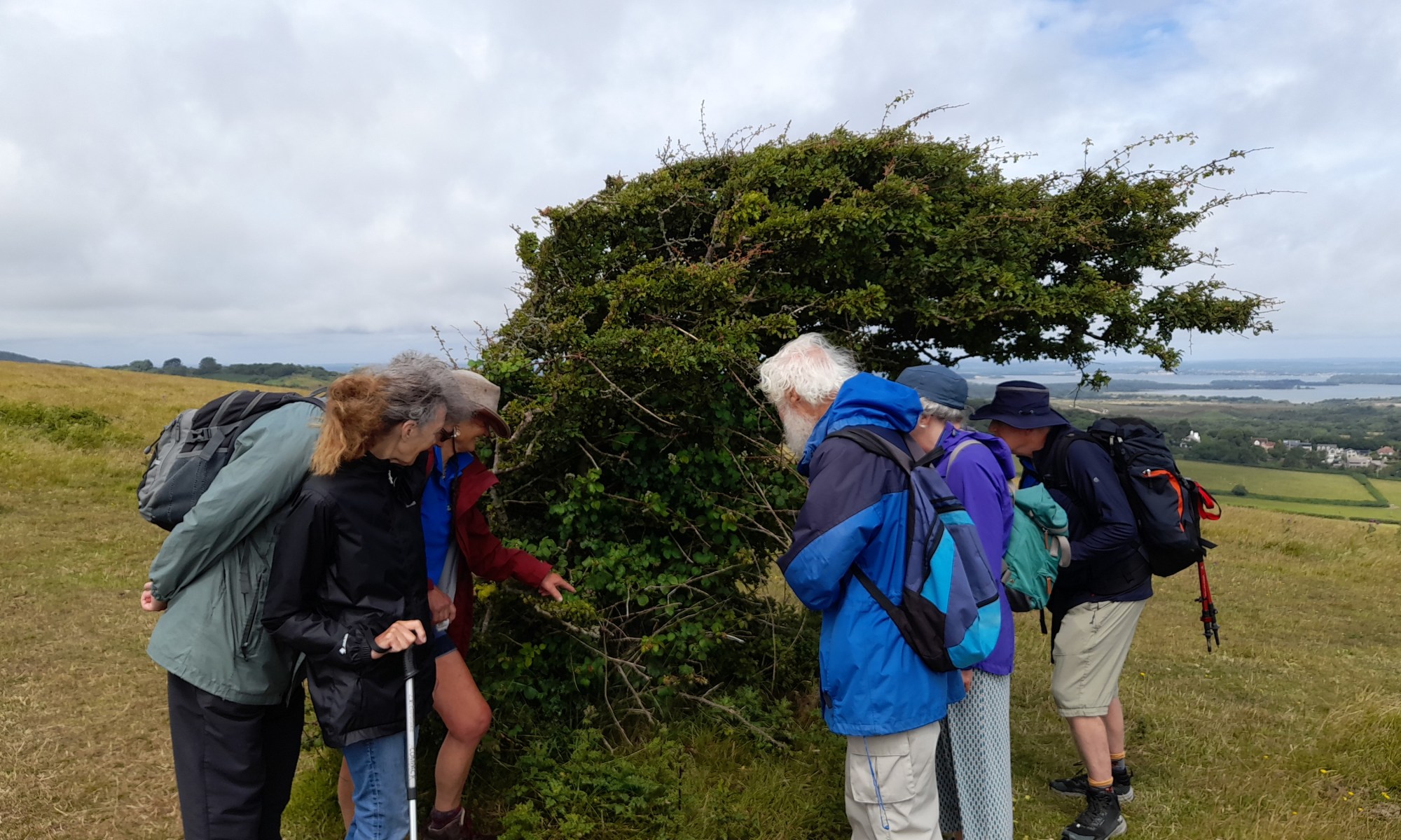 It was a damp, grey morning when I met up with walkers from the Loft community group on the edge of Swanage. We had been hoping for a warm sunny day like many we had been treated to over the last month, because this particular walk over Ballard Down is a wonderful place to spot butterflies and other insects in June and July. The low-nutrient chalk grassland is managed by the National Trust and at this time of year it is awash with wild flowers. But butterflies donโt like to fly in the drizzle, so we had to hope that the forecast of clear skies within a couple of hours was accurate as we set off up the hill into the low cloud.