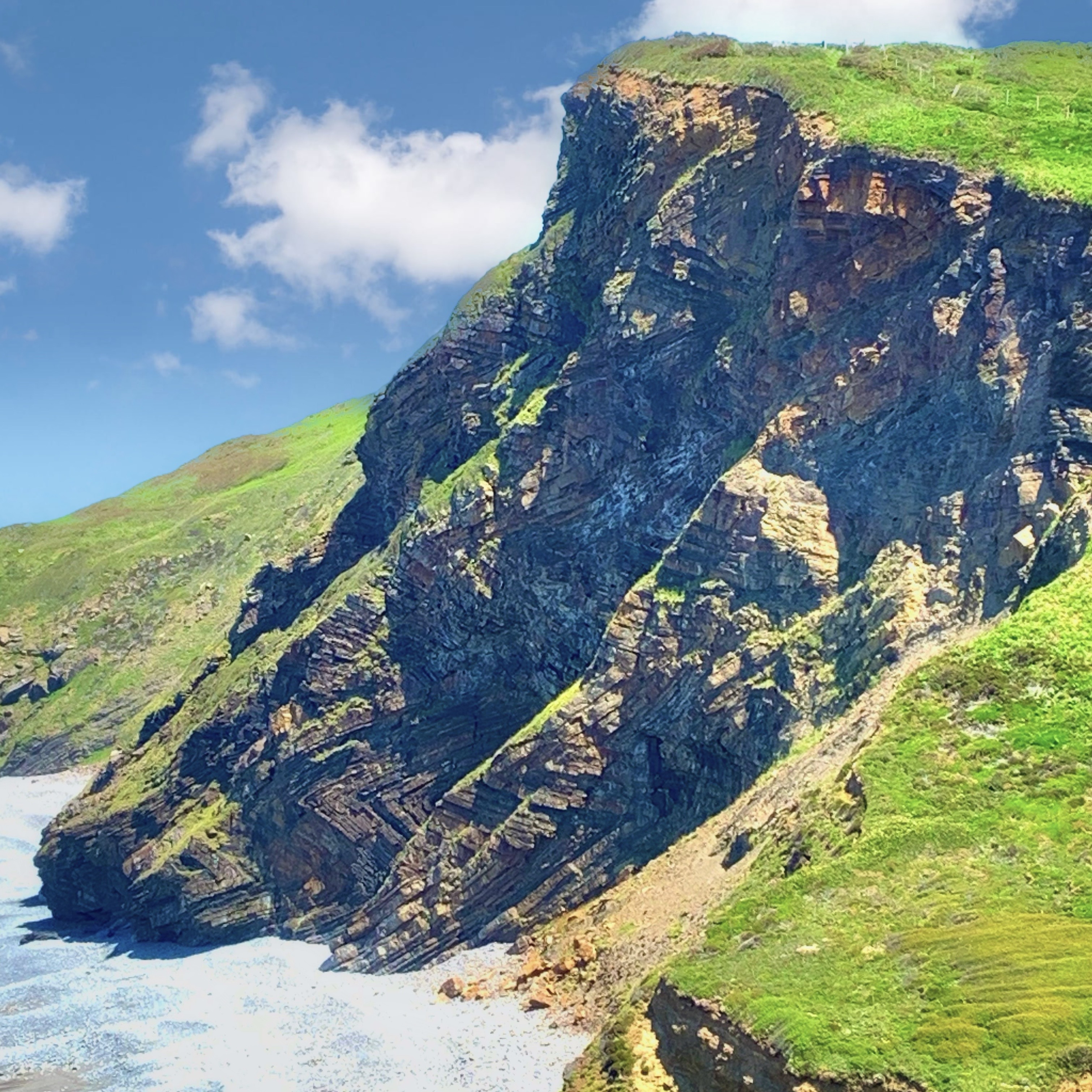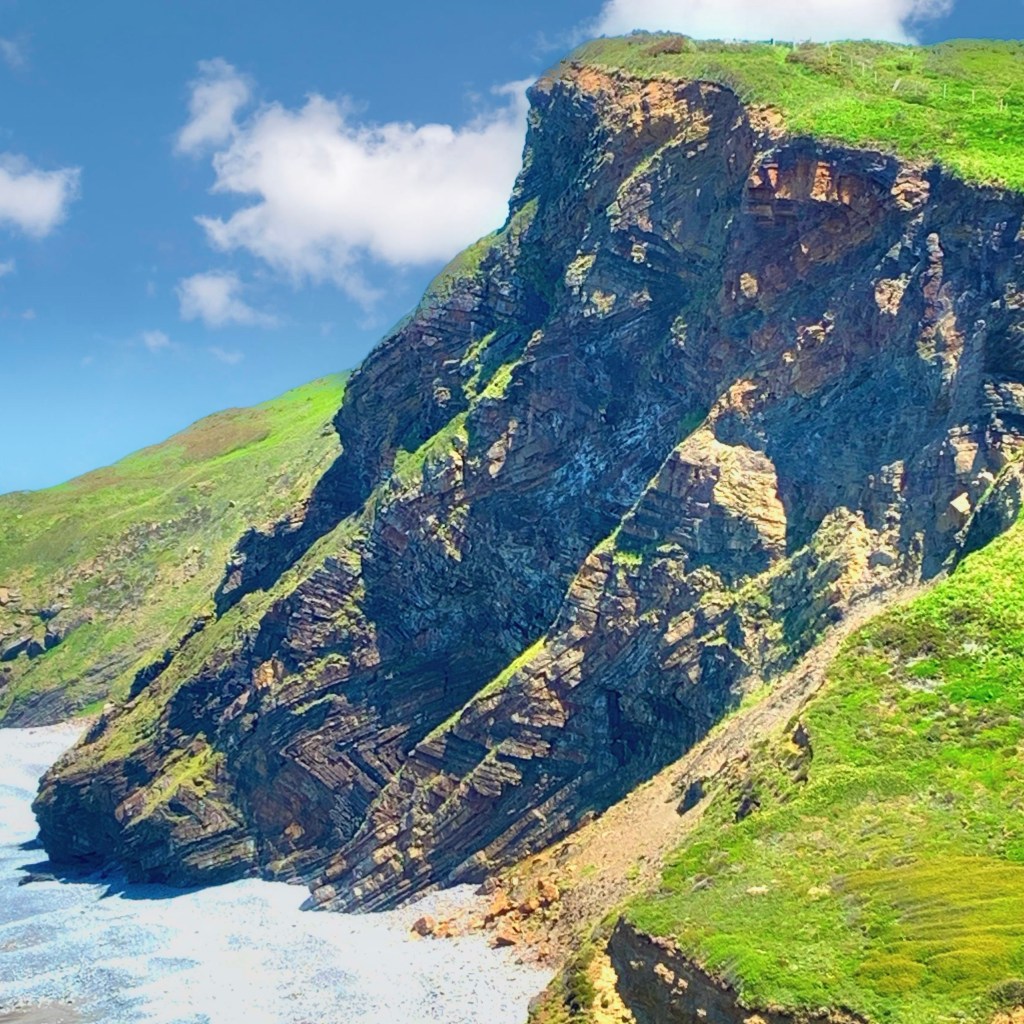 Now for the juicy part! The middle part of the hike was like a relentless rollercoaster that went on and on and on for hours! Well, at least 2! We climbed Penhalt Cliff (a 200m ascent, one of the steepest on the route), my lungs now burning on the uneven steps carved into the slate. We passed Dizzard Point and descended to secluded Chipman Strand (a rocky cove accessible only at low tide), only to start climbing AGAIN! The views were stunning, but it was hot; I’d forgotten my hat, and I’d started to moan a bit!