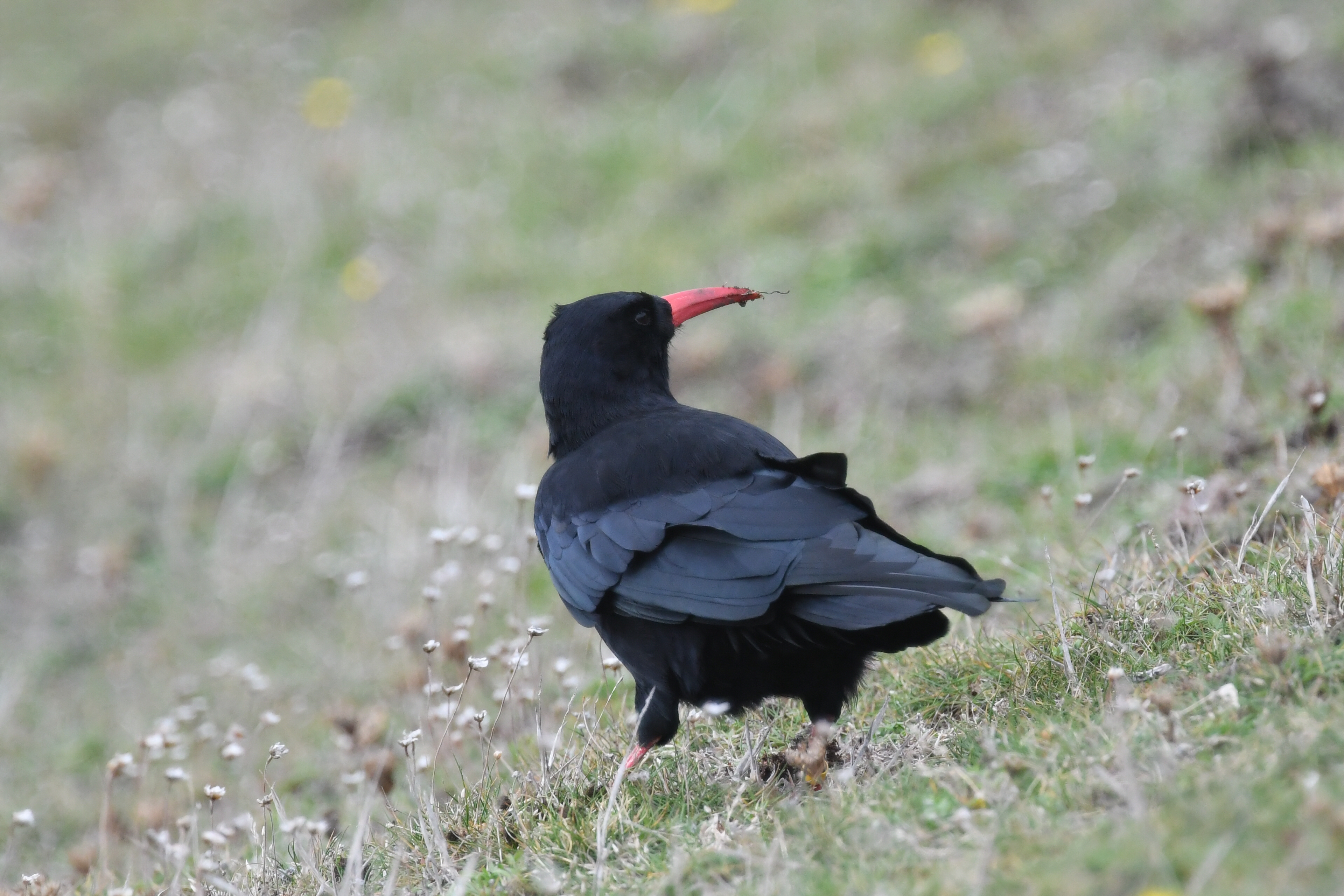 I was lying down within the heather and gorse whilst waiting and watching this pair of Cornish Choughs feeding on worms. I began experimenting with angles and I followed the pair for around two hours. I made sure not to disturb them and kept a good distance. I stayed extremely still whilst laying down around 5 metres away from the Choughs on the cliff edge.