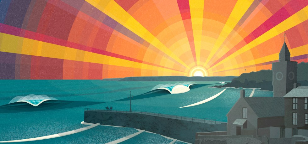 Our featured artist this month is Laurie McCall. Living in Cornwall, Laurie has established himself as an artist known for his bold stylised paintings of the surf and coastline that he calls home. Laurie is also a photographer with an eye for capturing stunning images of waves as they barrel toward the shoreline. Read our interview with Laurie and find out more about what inspires his creative perspective of the natural coastal landscape.